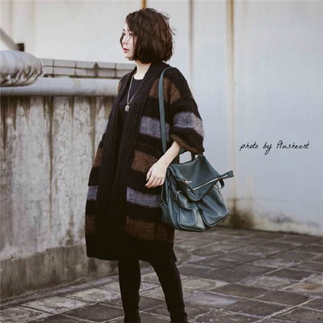 7针粗针条纹拼色外套大衣